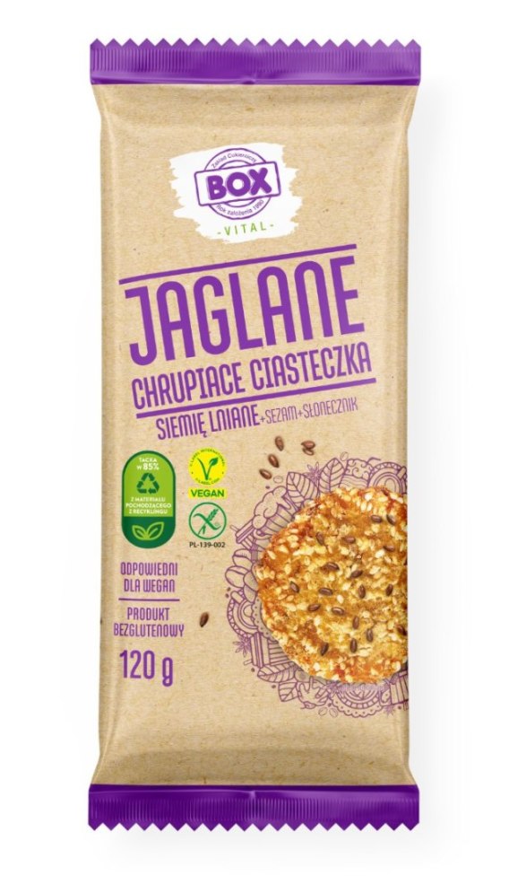 Lekkie jaglane ciastko sprawdzi się idealnie jako szybka przekąska między posiłkami lub deser, kiedy tylko tego potrzebujesz. Dzięki zawartości sezamu, siemienia lnianego i słonecznika stanowi niezwykle wartościowe uzupełnienie codziennej diety. Ciastko nie zawiera glutenu ani laktozy. Jest także idealną opcją dla wegan i wegetarian.
